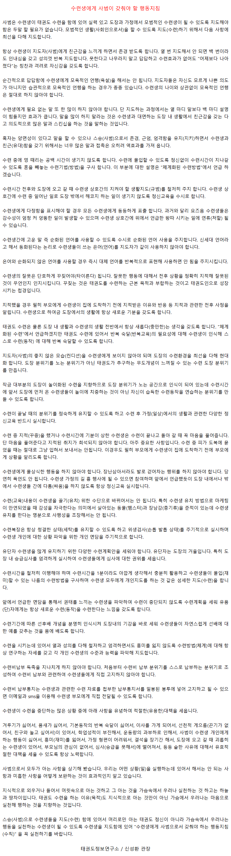 수련생에게 사범이 갖춰야 할 행동지침[동영상]